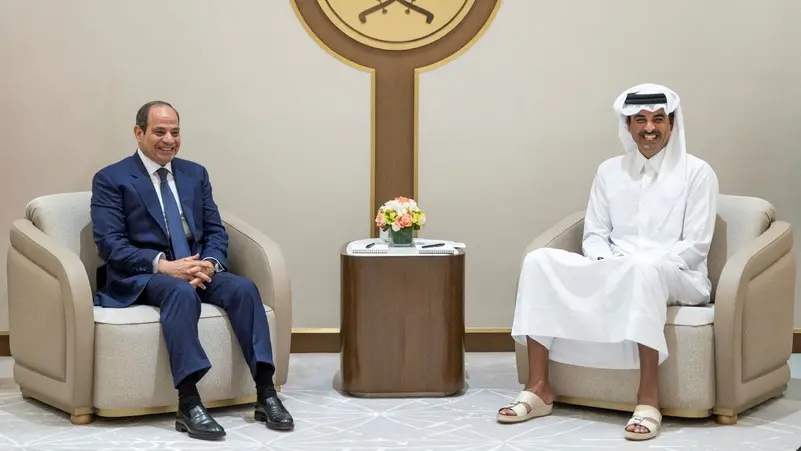 وذكر المتحدث الرسمي أن السيد الرئيس توجه عقب ذلك إلى دولة قطر الشقيقة، حيث كان في استقبال سيادته لدى الوصول لمطار حمد الدولي أخوه صاحب السمو الشيخ تميم بن حمد آل ثاني، أمير دولة قطر، وكذلك السيد السفير وليد الفقي، سفير جمهورية مصر العربية لدى دولة قطر، وأعضاء السفارة المصرية في الدوحة.