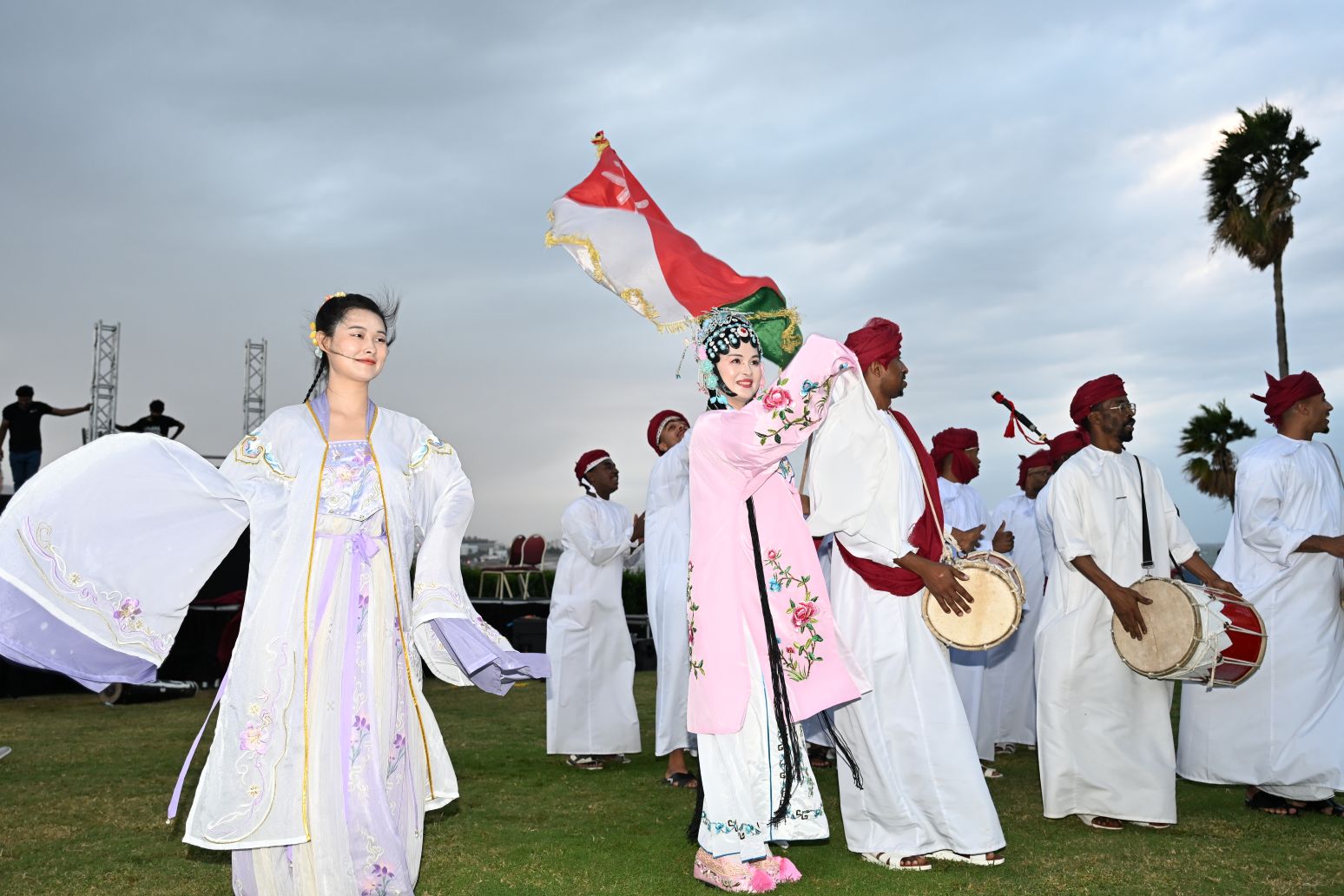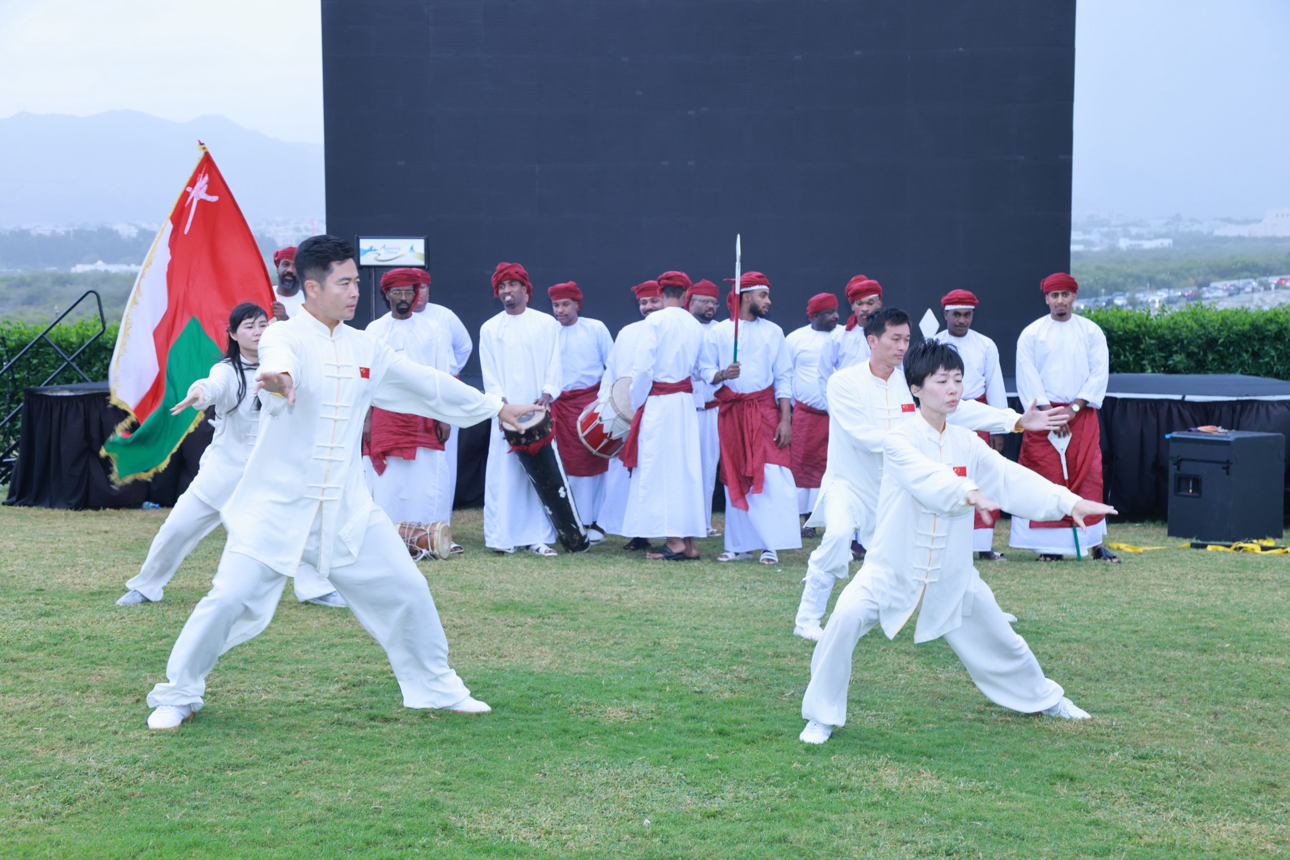 وقدّم الفنانون القادمون من الصين عروضاً فنية مميزة للجمهور، شملت رقصة «الصين الجميلة»، وعروض تاي تشي، وعزفاً على آلات موسيقية تقليدية مثل الغوتشنغ، والإرهـو، والفلوت القرعي، إضافة إلى عروض الفنون القتالية، وتبديل الأقنعة في أوبرا سيتشوان، وعرض الأزياء التقليدية (الـتشيبـاو). وقد أبرزت هذه الأشكال الفنية المتنوعة الجماليات والروح العميقة للثقافة الصينية. وفي ختام العروض، دُعي فريق موسيقي عُماني محلي لتقديم رقصة المدي التقليدية، حيث اعتلى فنانو البلدين المسرح معاً، وتوّجت الفعالية بأداء جماعي مشترك أوصل الأجواء إلى ذروتها.
