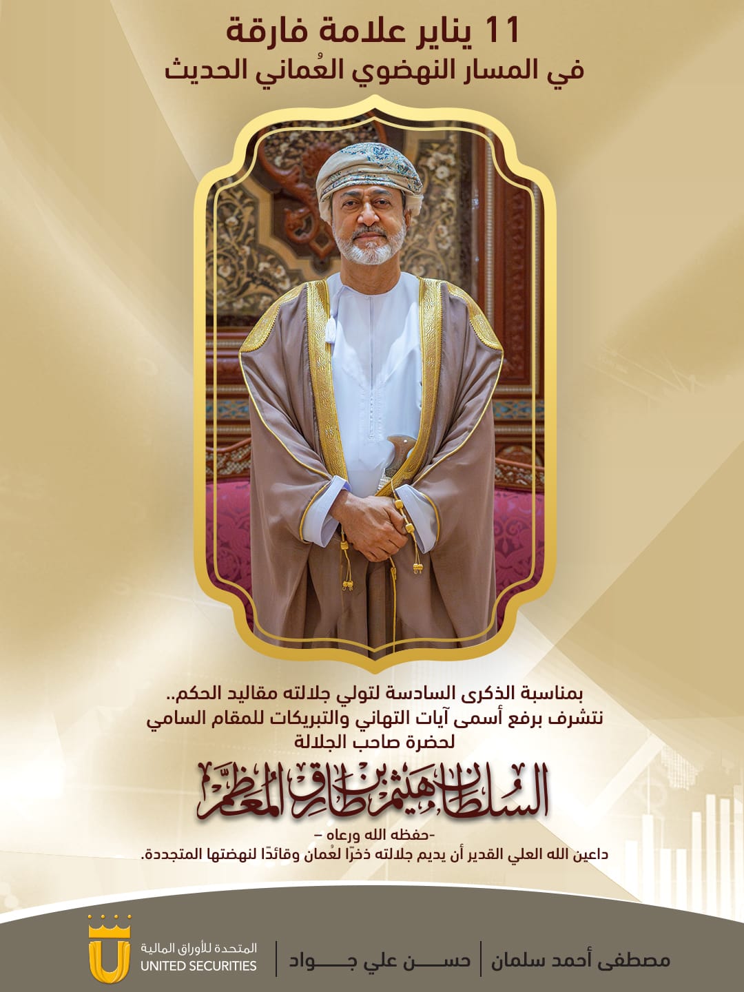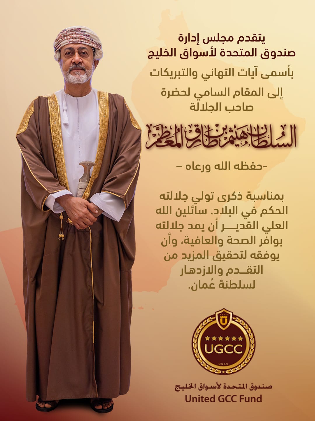 محمد علي بن عبد الأمير سلطان يرفع أسمى آيات التهاني والتبريكات إلى المقام السامي حضرة صاحب الجلالة السلطان هيثم بن طارق المعظم بمناسبة تولي جلالته الحكم في البلاد