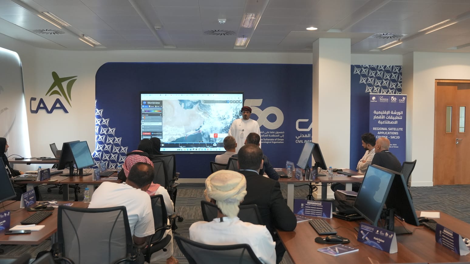 تنظم الدورة هيئة الطيران المدني ممثلةً بمركز الامتياز لتطبيقات الأقمار الاصطناعية – مسقط، وبالتعاون مع المنظمة الأوروبية لتشغيل الأقمار الاصطناعية الخاصة بالأرصاد الجوية (EUMETSAT)،