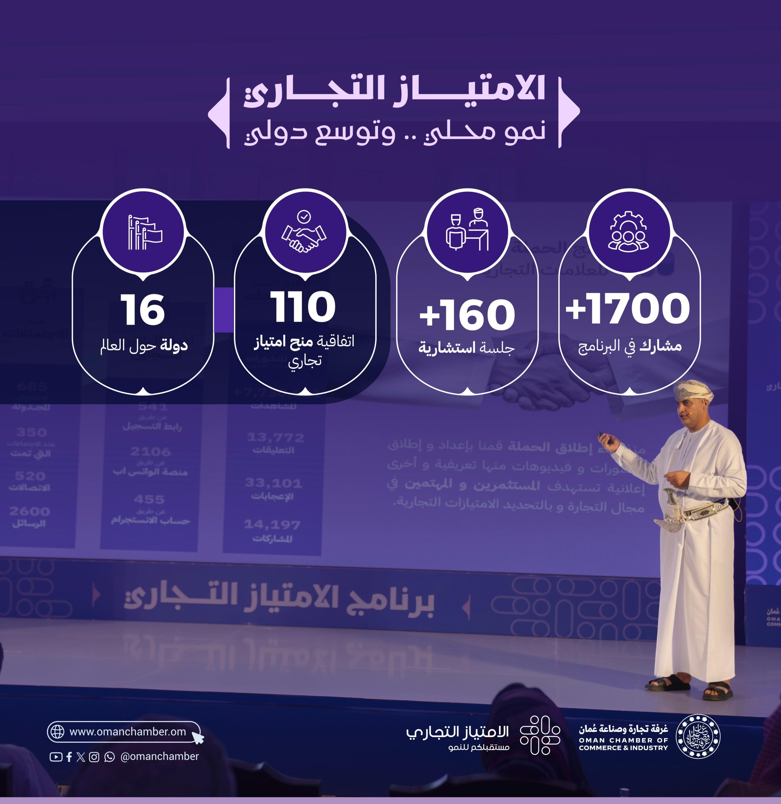 تحت رعاية معالي الشيخ الفضل بن محمد الحارثي الأمين العام لمجلس الوزراء، بحضور سعادة الشيخ فيصل بن عبدالله الرواس رئيس مجلس إدارة غرفة تجارة وصناعة عمان، وعدد من المكرمين والسفراء وأصحاب السعادة، وأعضاء مجلس إدارة الغرفة، وأصحاب وصاحبات الأعمال ووسائل الإعلام العالمي والمحلية ،أطلقت غرفة تجارة وصناعة عمان النسخة الرابعة من برنامج الامتياز التجاري،