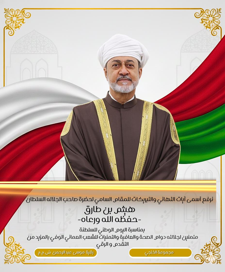 تهاني مجموعة الخنجي ورقية بنت موسى عبدالرحمن ش م م بمناسبة اليوم الوطني لسطنة عُمان