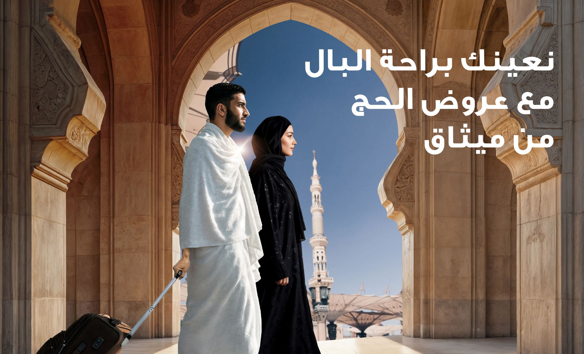 وبالتزامن مع موسم الحج، يقدم ميثاق تسهيلات وخدمات مصرفية مخصصة لزوار بيت الله الحرام من ضمنها منتج تمويل السفر بنسبة تنافسية ومزايا بطاقات ميثاق المختلفة التي تتضمن المساعدة في السفر وإمكانية الدخول إلى صالات المطارات والاسترداد النقدي والعديد من المزايا المختلفة.